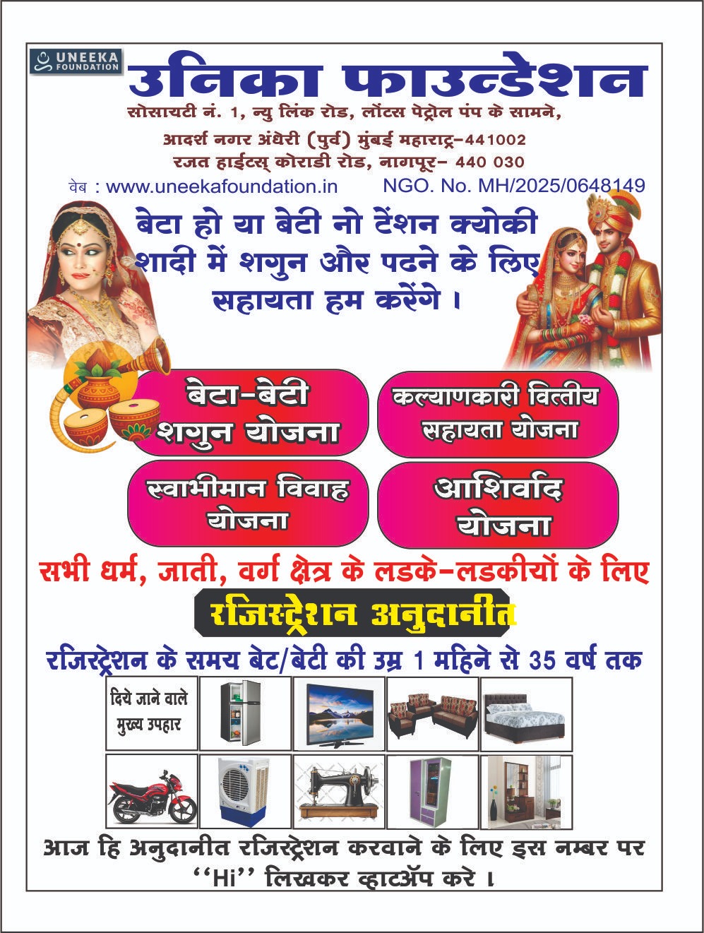 इन सभी उद्देशयों को कामयाब बनाने के लिए UNEEKA FOUNDATIONका 29 मार्च 2024 को नागपूर मे निर्माण हुआ ।